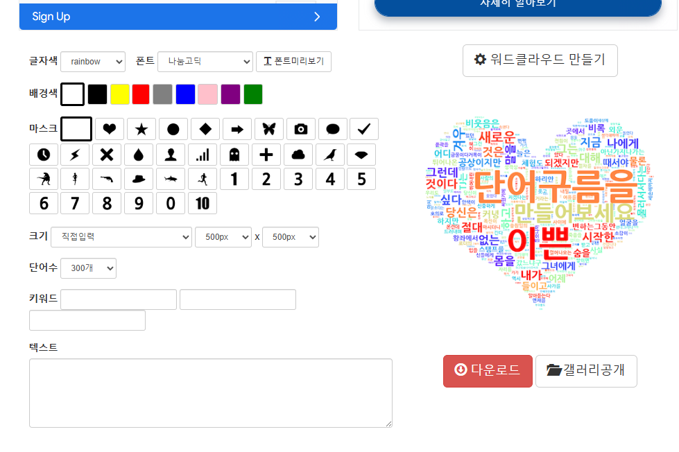 wordcloud.kr은 간편하게 워드클라우드를 생성할 수 있는 사이트입니다.